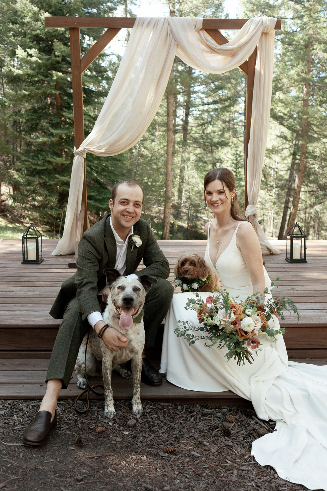 Chelsea and Andrew hosted a small Colorado wedding at Juniper that felt joyful, personal, and intentionally relaxed. With 40 guests, live playlists, and their two dogs walking down the aisle, the day balanced heartfelt moments with playful energy. Their ceremony took place at Juniper Lodge & Treehouses, using the meadow as a natural backdrop before heading into Denver for an evening reception.