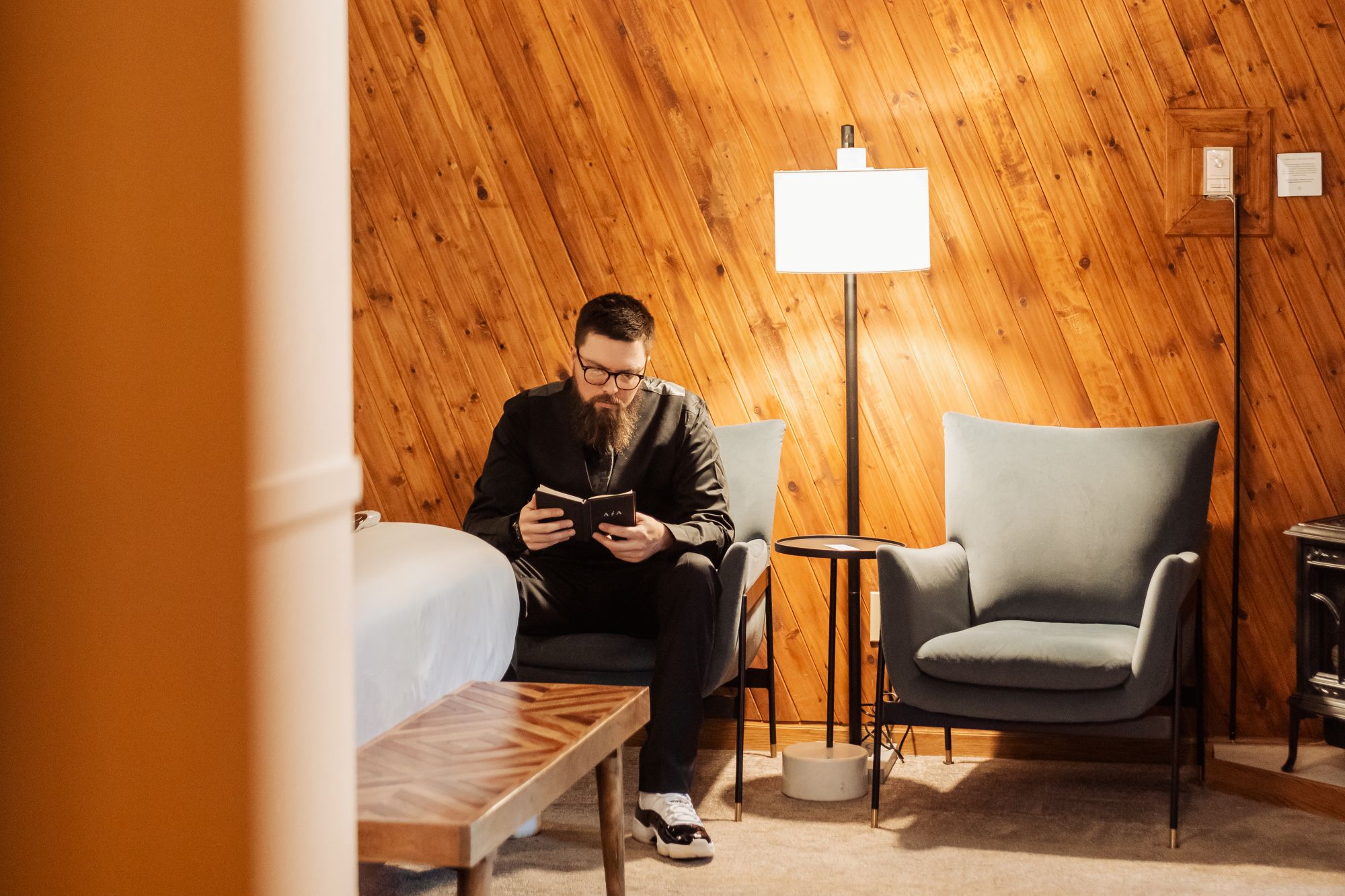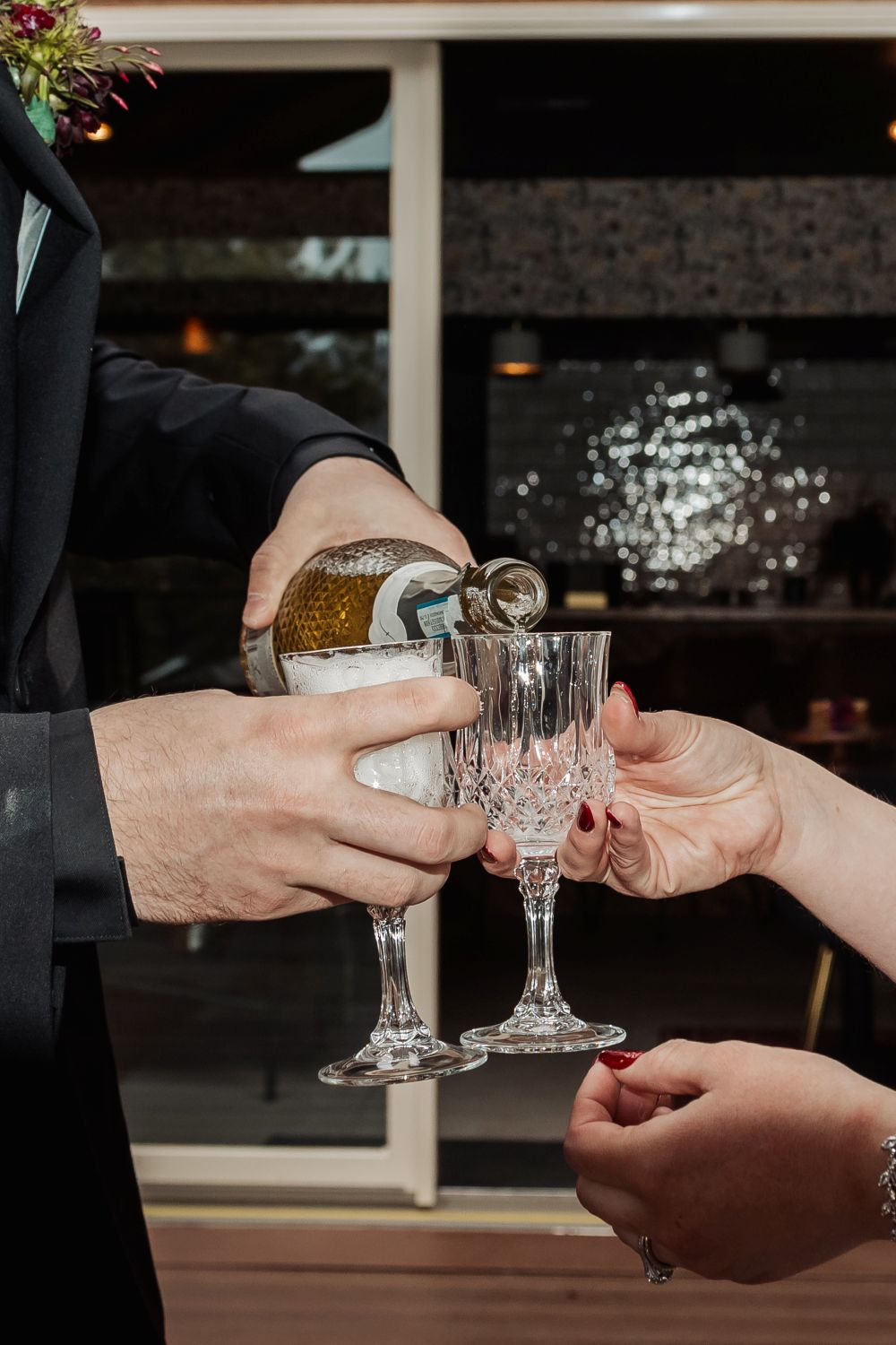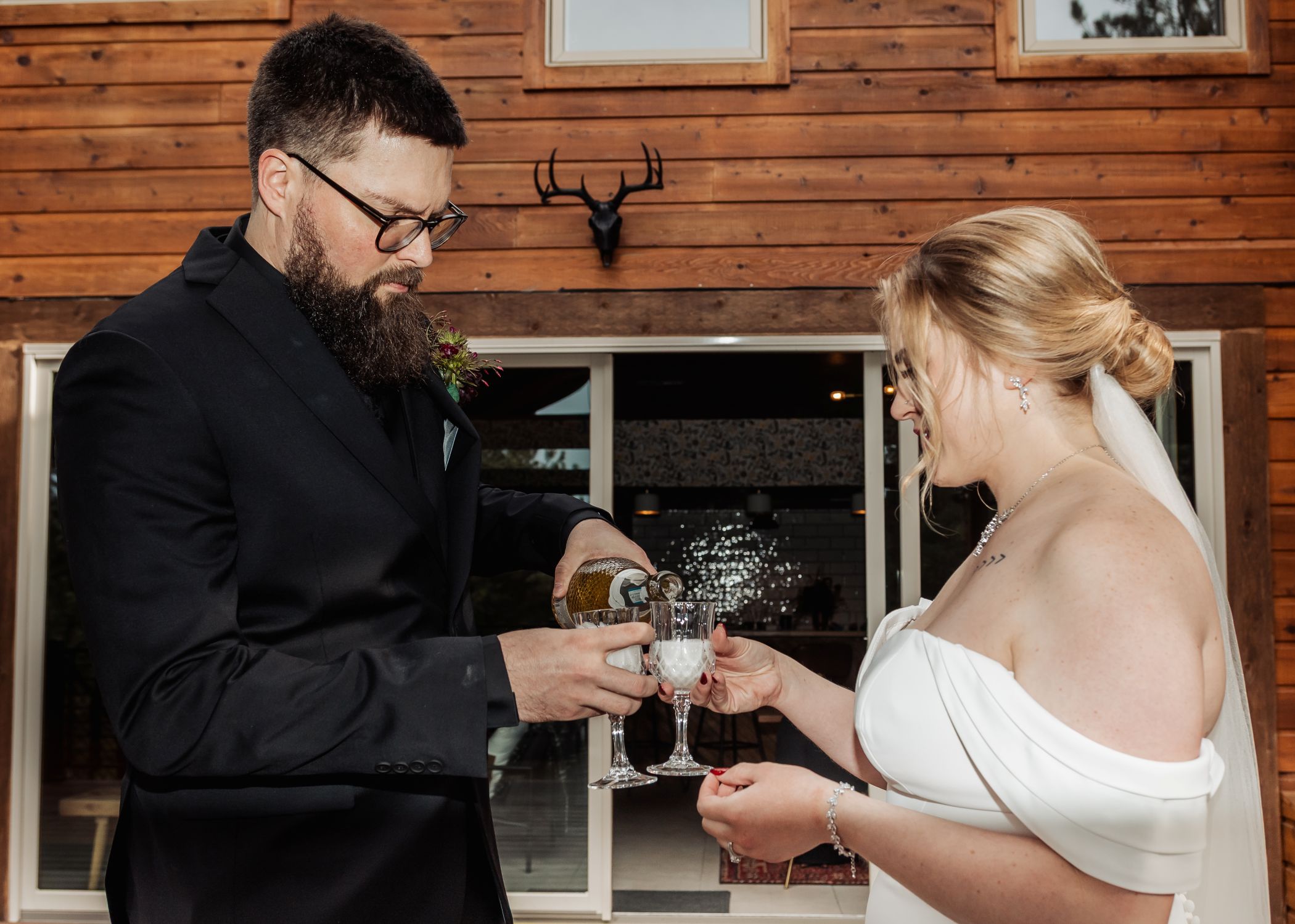 They ended their elopement with champagne and cake inside the lodge, keeping everything small and personal. No rush. No audience. Just the two of them enjoying a day built entirely around their connection.