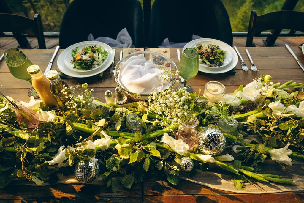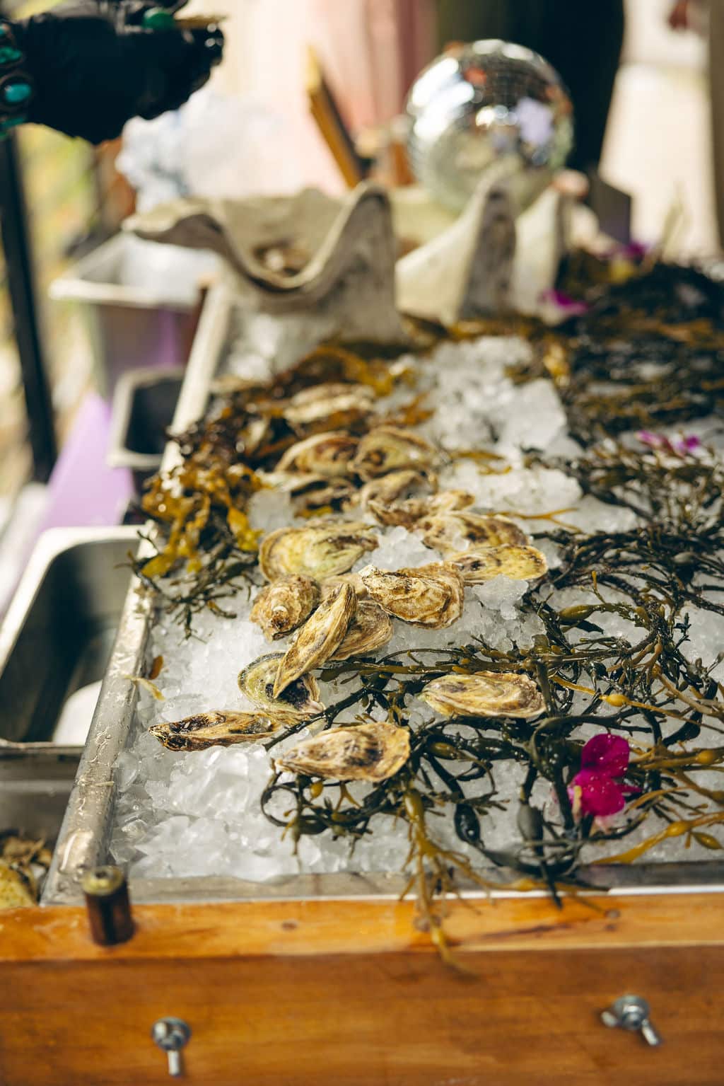 After the kiss, guests headed to the mountain view deck to dry off and enjoy a raw bar from The Oyster Bae. The mix of mountain air, disco ball décor, and fresh oysters made the scene feel effortlessly cool.