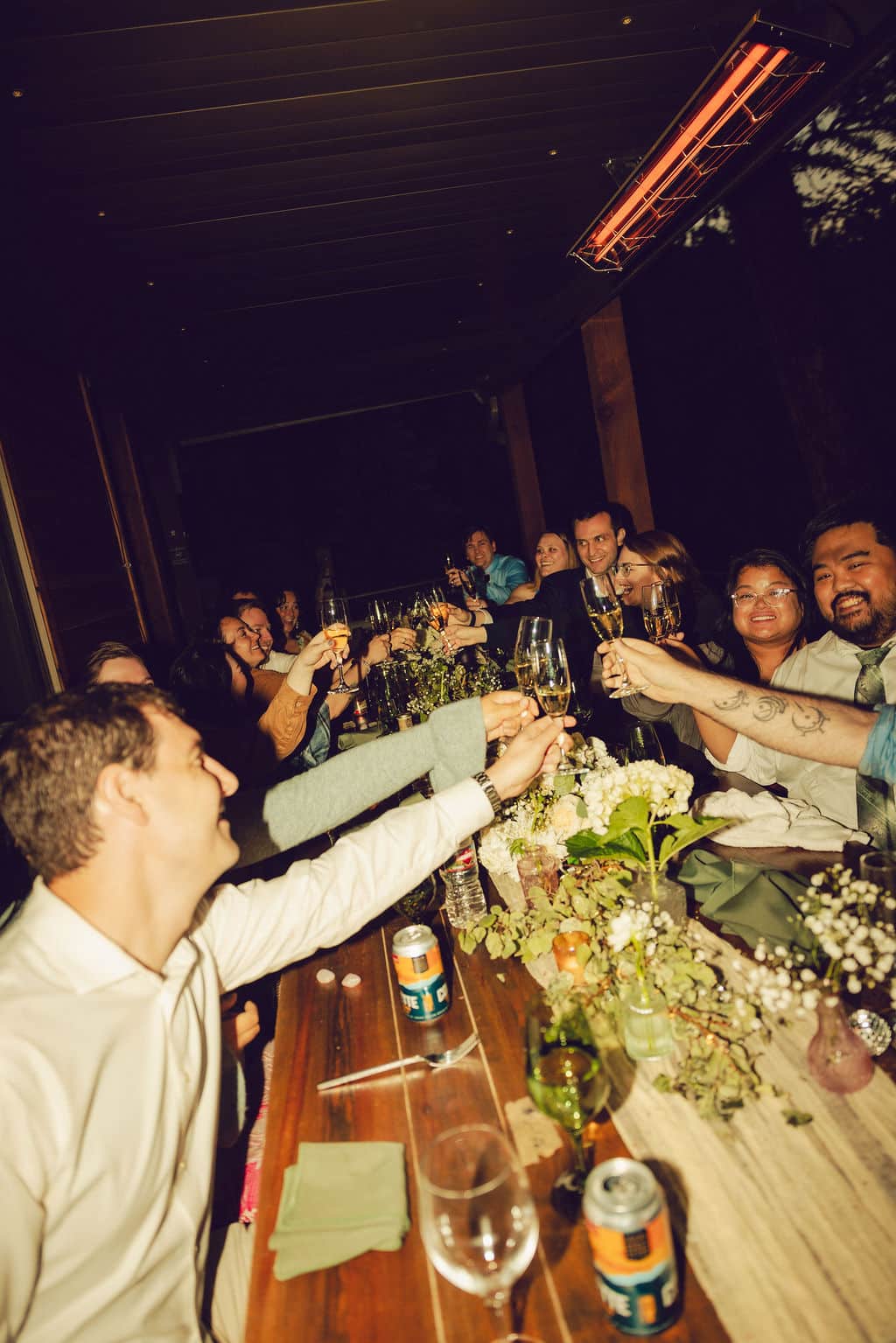 Biscuits & Berries served an elegant buffet dinner under the evening sky, and the repurposed florals from Jenifer Arseneault added soft, organic color to each table. Guests toasted with champagne, laughed through the speeches, and lingered in the glow of lights.