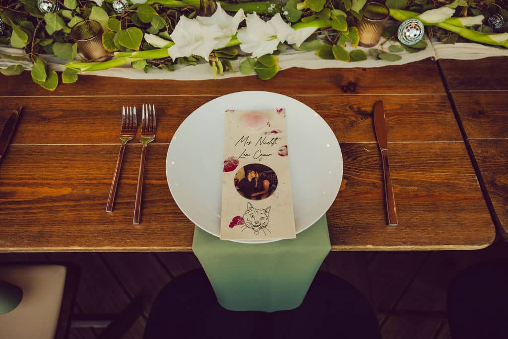 As the sun set, Peyton Hayez Photo captured golden-hour portraits before Nikki and Kyle’s first dance to “Vienna” by Billy Joel. When Queen’s “Don’t Stop Me Now” kicked in, the deck turned into a dance floor. Fans with their dogs’ names—Scout and Lucy—were passed out for guests. The night closed with a private last dance to “Home” by Jack Johnson before their sparkler-style sendoff. It was emotional, fun, and fully true to who they are.