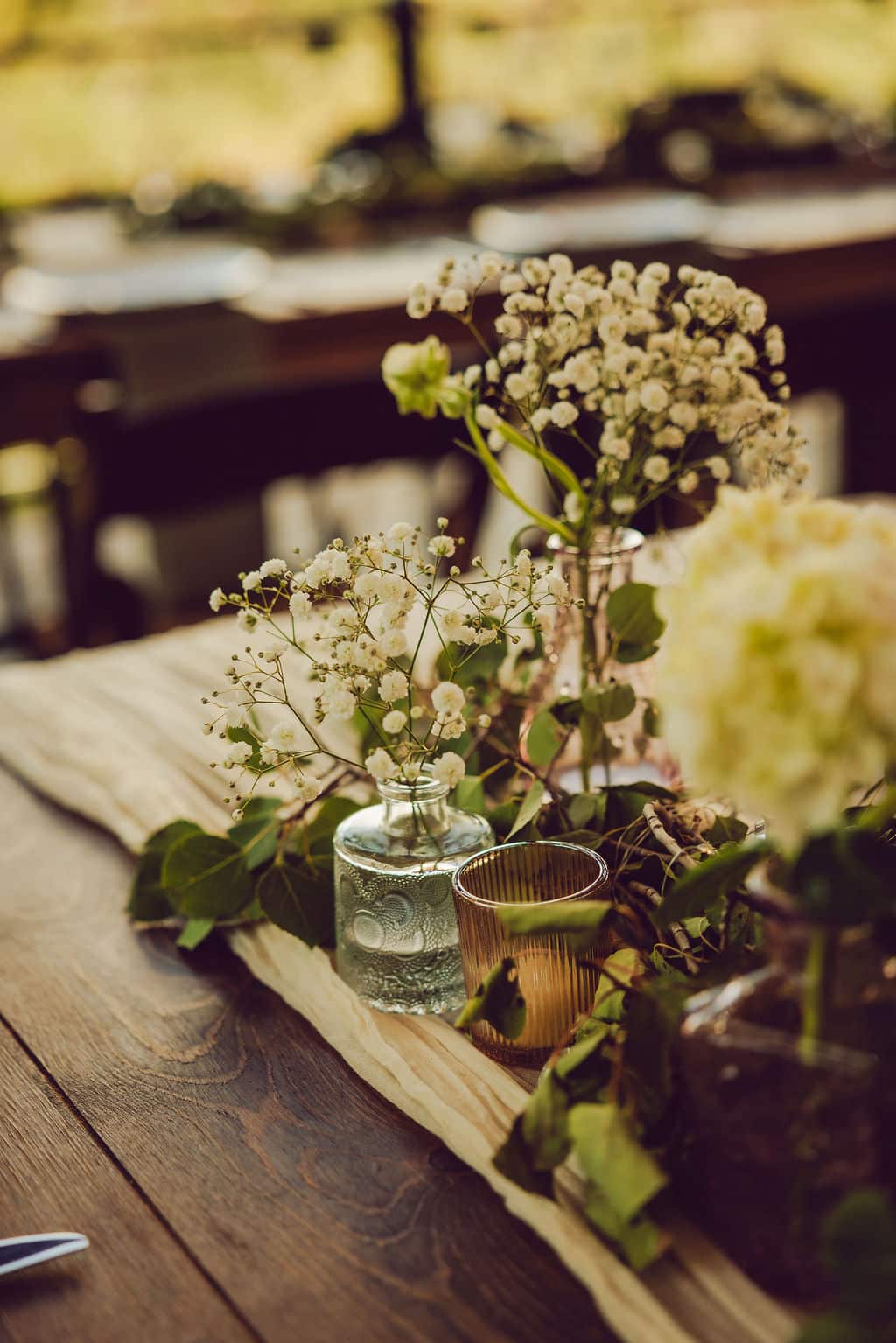 When the ceremony began, “This Must Be the Place” by Talking Heads played as Kyle took his place in the meadow. Moments later, Nikki walked down the aisle to Led Zeppelin’s “In the Light,” sunlight flickering through the trees.