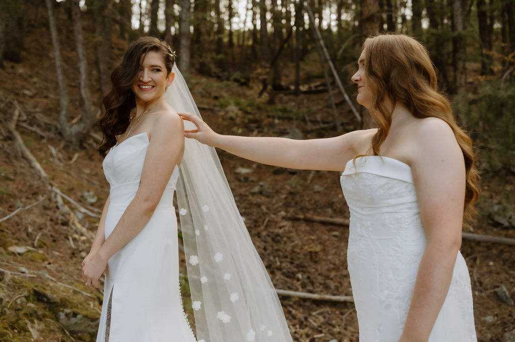 Kim and Domi planned their wedding around what matters most to them: intention, presence, and celebrating in a way that felt authentic to them. Their fall LGBTQ+ wedding at Juniper reflected that from start to finish. October brought crisp air, soft light, and a quiet mountain backdrop that held the day with ease.