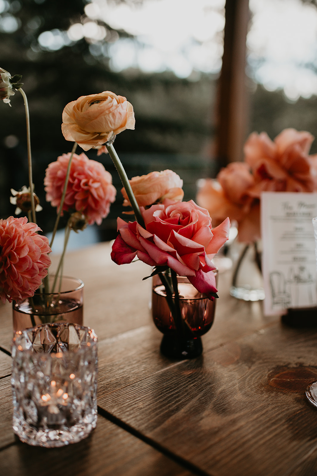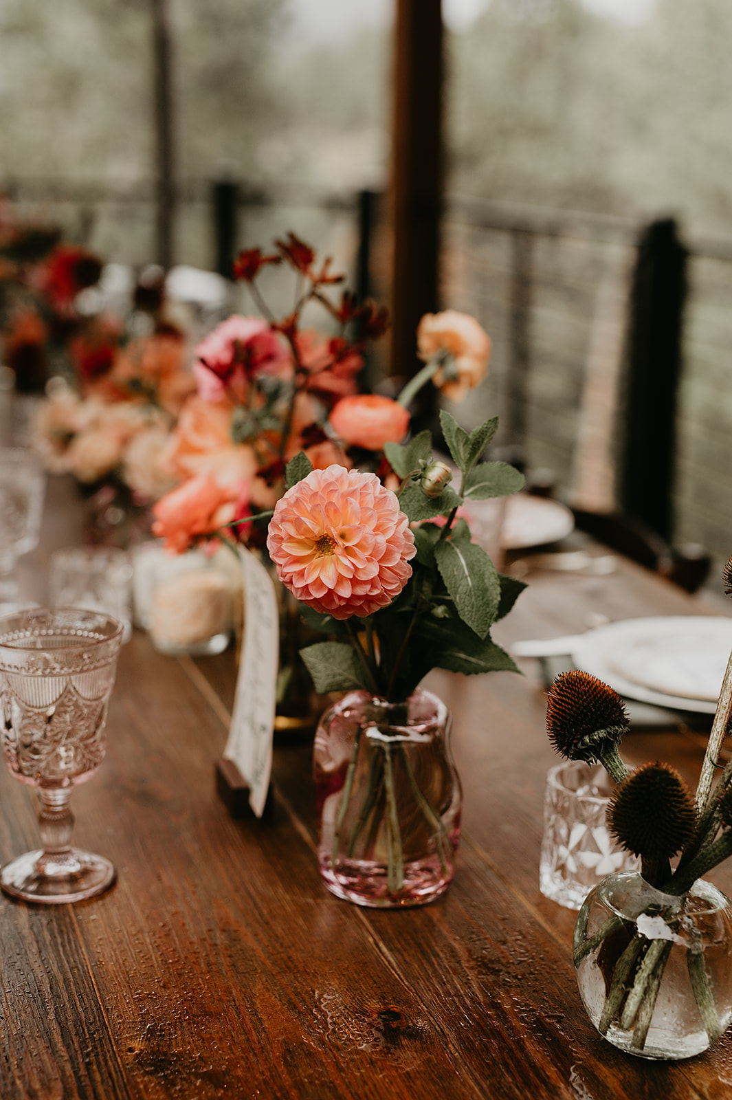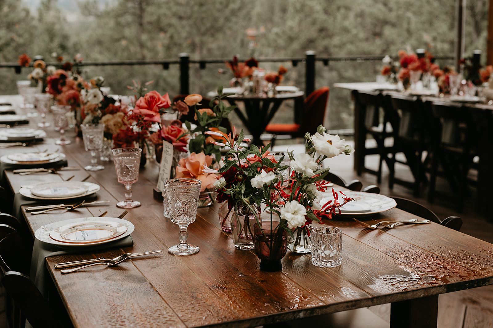 The morning began at a nearby Airbnb with Nomadic Beauty for hair and makeup. At Juniper, McArthur Weddings & Events coordinated rentals from Allwell Rentals, while RLY RLY filled the meadow and deck with soft fall blooms.