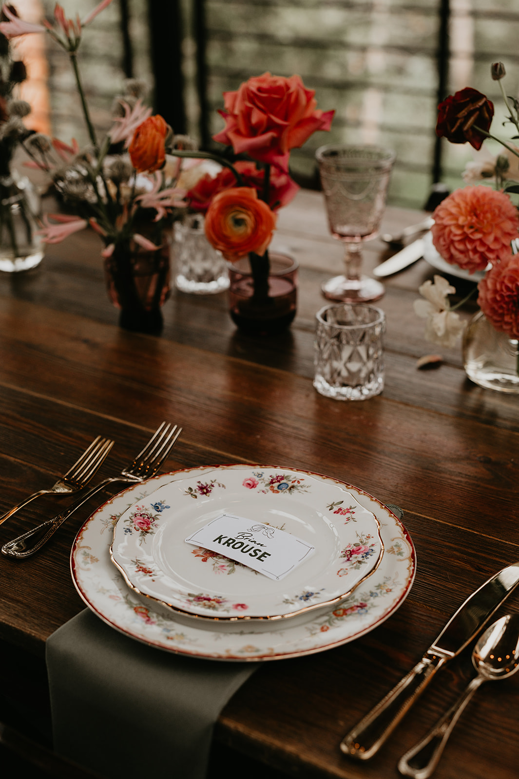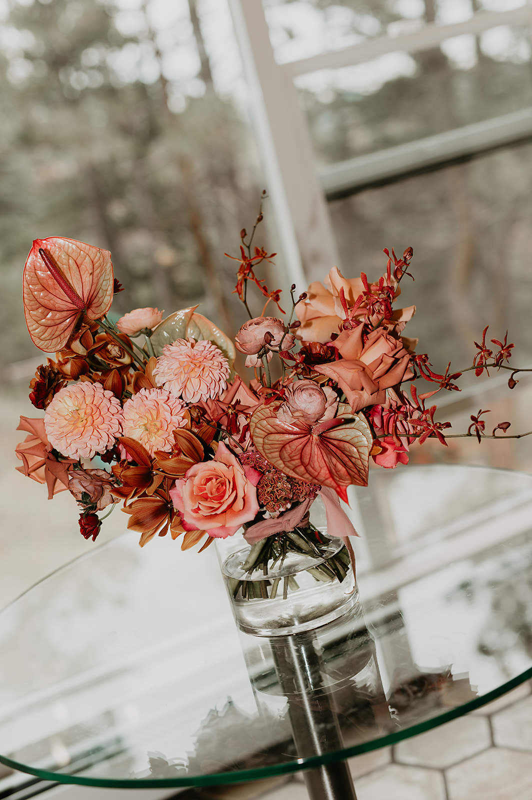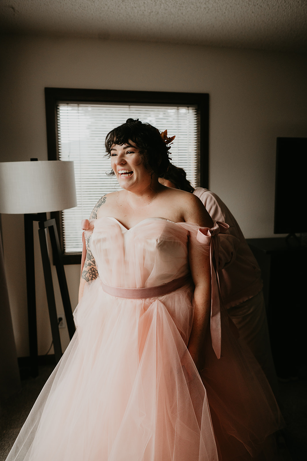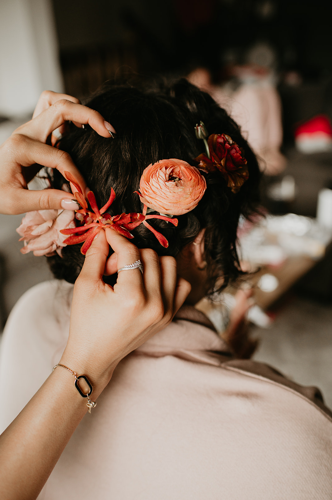 The morning began at a nearby Airbnb with Nomadic Beauty for hair and makeup. At Juniper, McArthur Weddings & Events coordinated rentals from Allwell Rentals, while RLY RLY filled the meadow and deck with soft fall blooms.