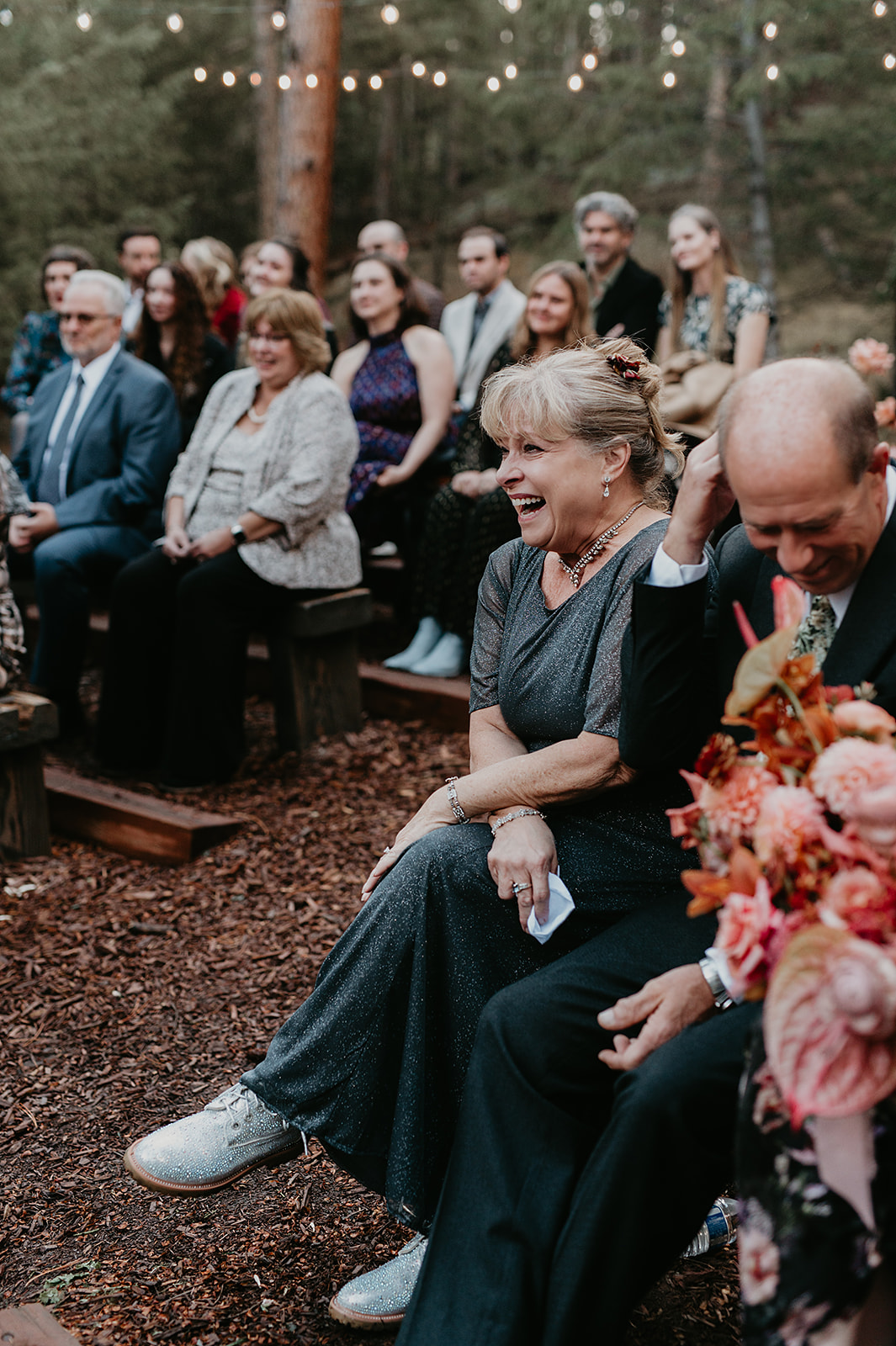 Sarah and Kellie’s Evergreen Colorado fall wedding at Juniper Lodge & Treehouses in Evergreen, Colorado was a perfect blend of mountain beauty and heartfelt celebration. Surrounded by towering pines and golden aspens, forty guests gathered for an intimate day filled with laughter, love, and stunning views of the Colorado foothills.